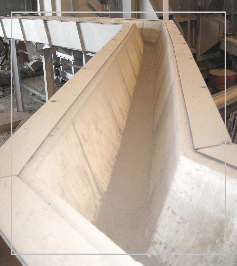 Refractarios de aluminio no mojables en material de sílice aluminosa o sílice electrofundida, resistentes a la abrasión y al choque térmico, en módulos que pueden incluir diseño de aislamiento térmico.