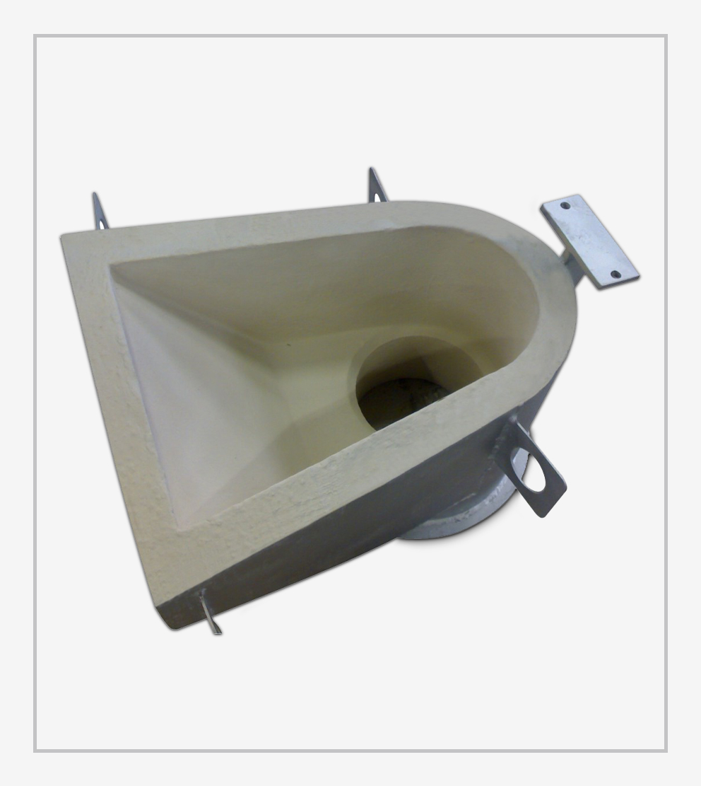 Piezas especiales para hornos de baja presión, como toberas, conos de alimentación con alta resistencia a la abrasión y al choque térmico.