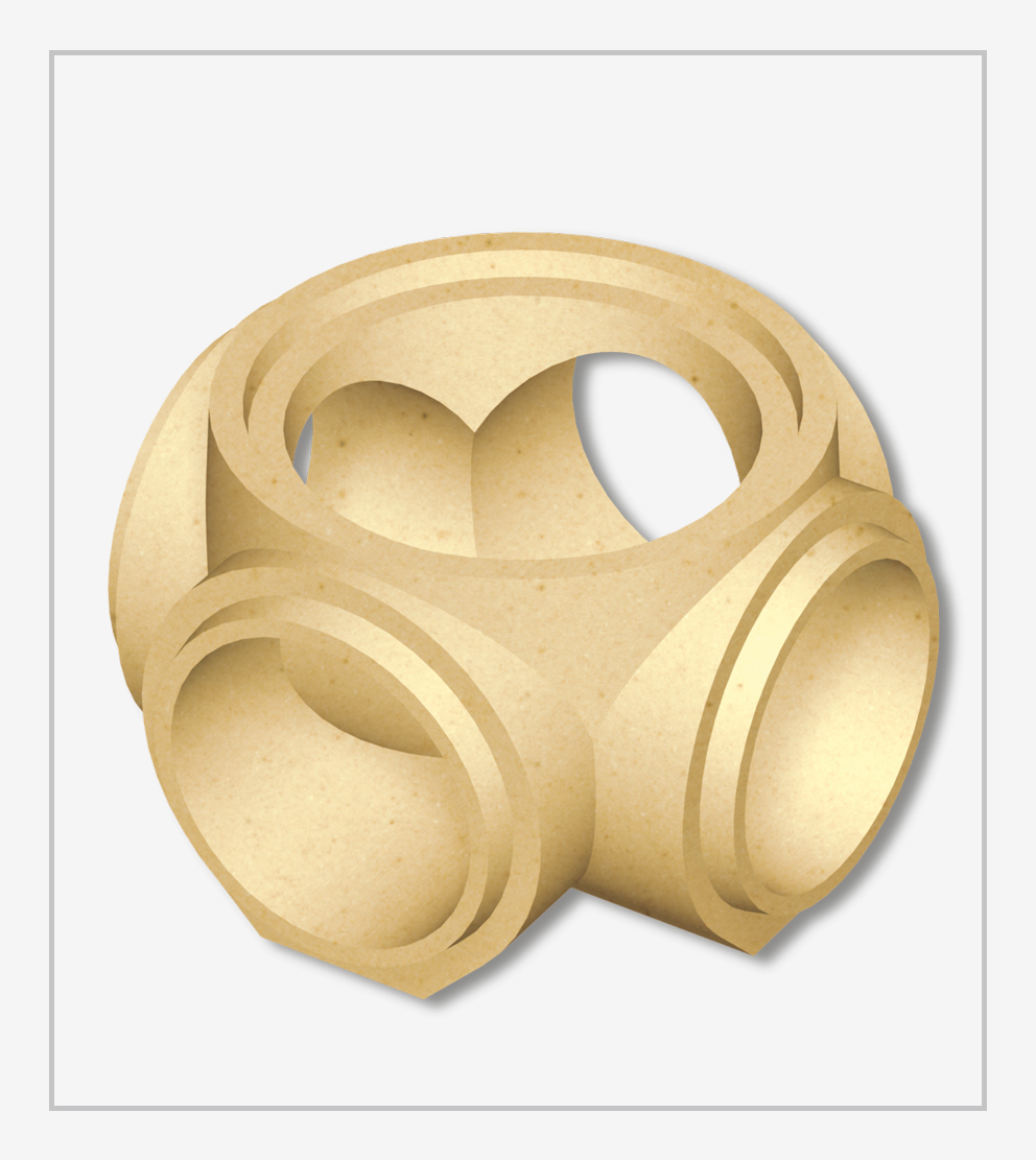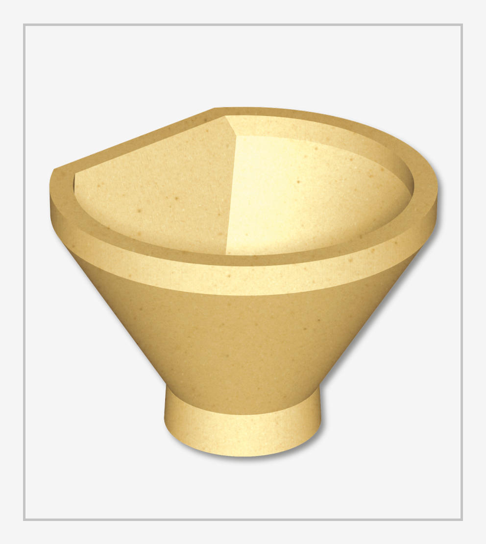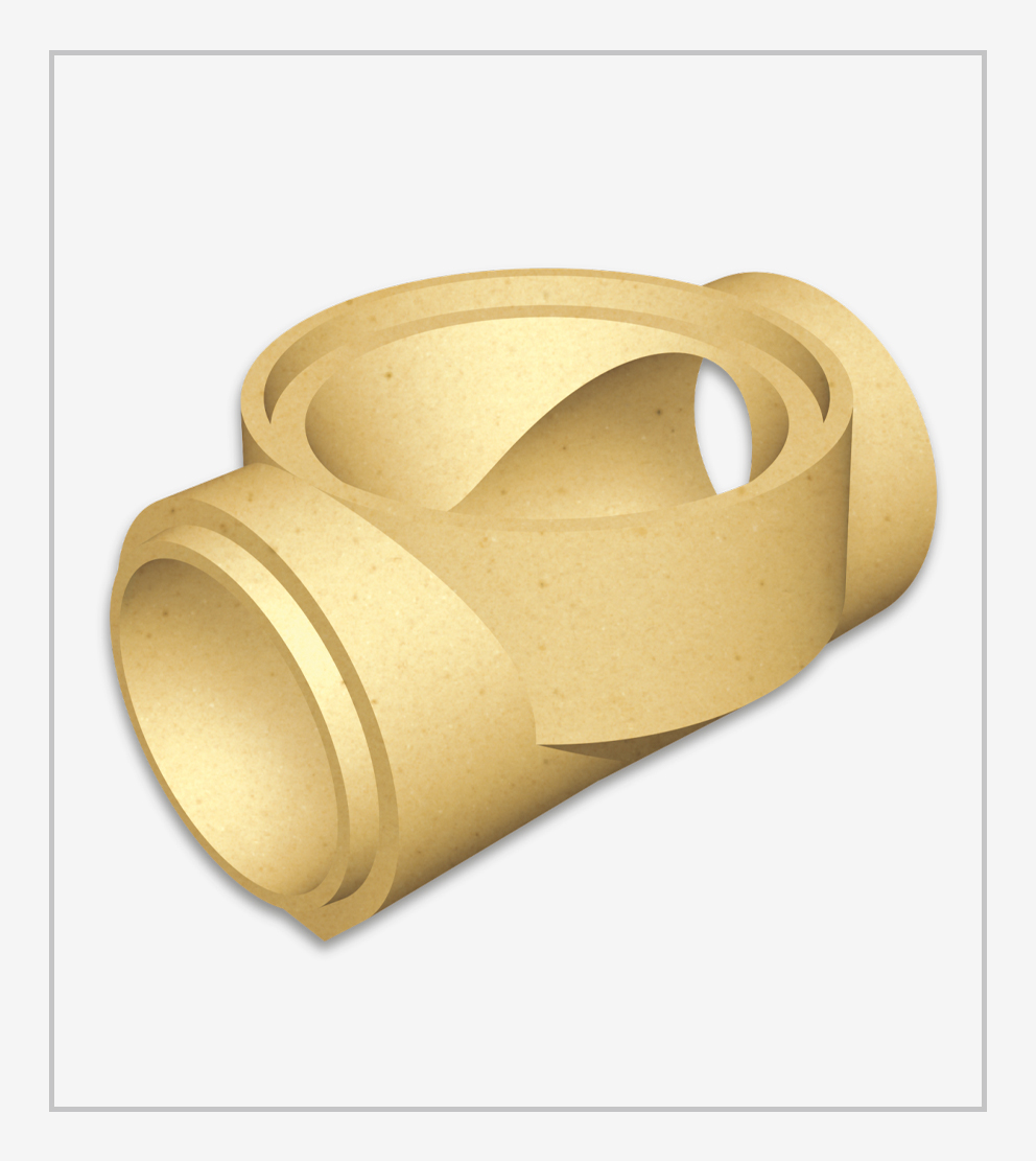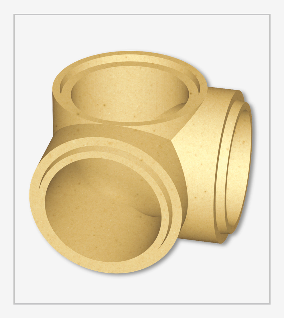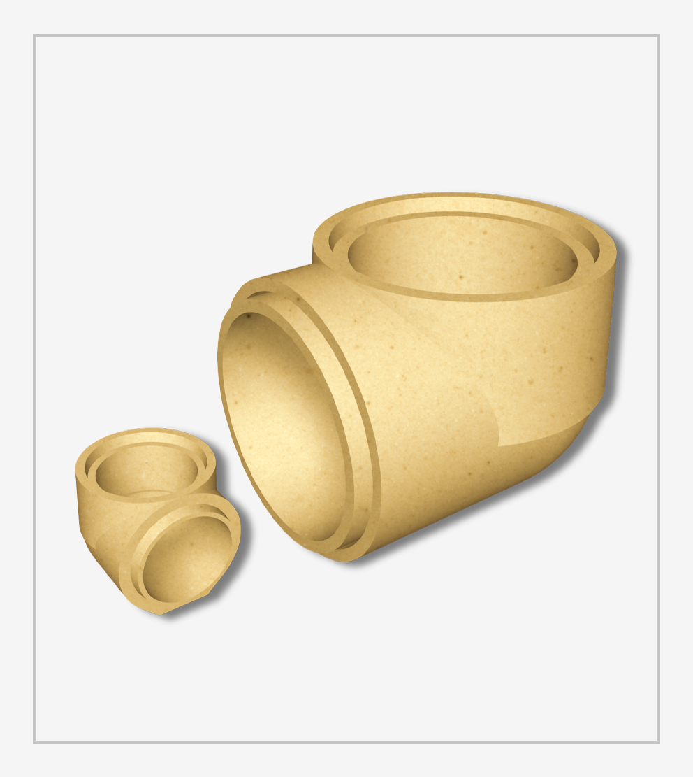 Completa linha de canais refratários para vazamento, com encaixe macho fêmea, conexões em formato cotovelo, T, cruzeta, canais de ataque, bocais de ataque e redução, nas opções sílico-aluminosos e mulita.